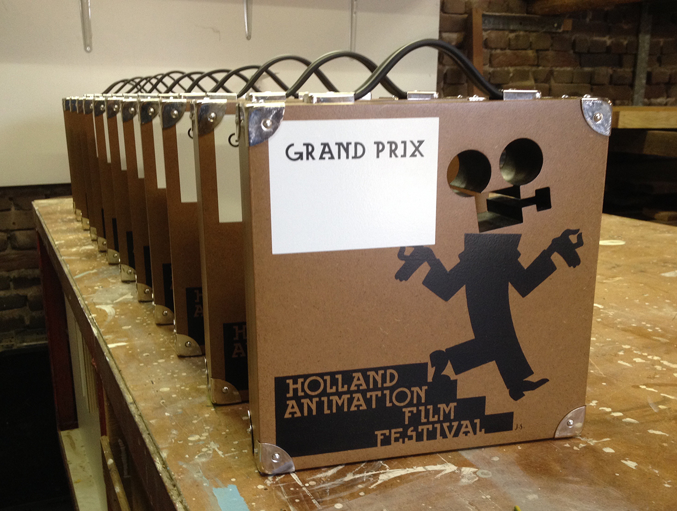 Prijzen voor het Holland Animation Film Festival. Dit festival wordt tweejaarlijks in Utrecht gehouden en bezocht door bezoekers uit binnen- en buitenland. De houten ‘filmkoffer’ wordt door een zeefdrukker bedrukt met het festivallogo. De winnaars van het festival ontvangen deze unieke prijs.